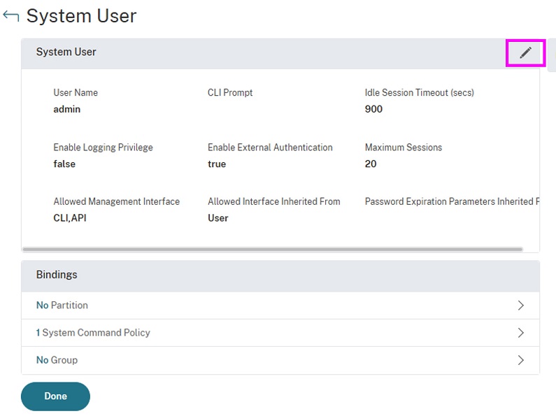ユーザ編集画面の System User 欄右上の編集アイコン をクリックします。